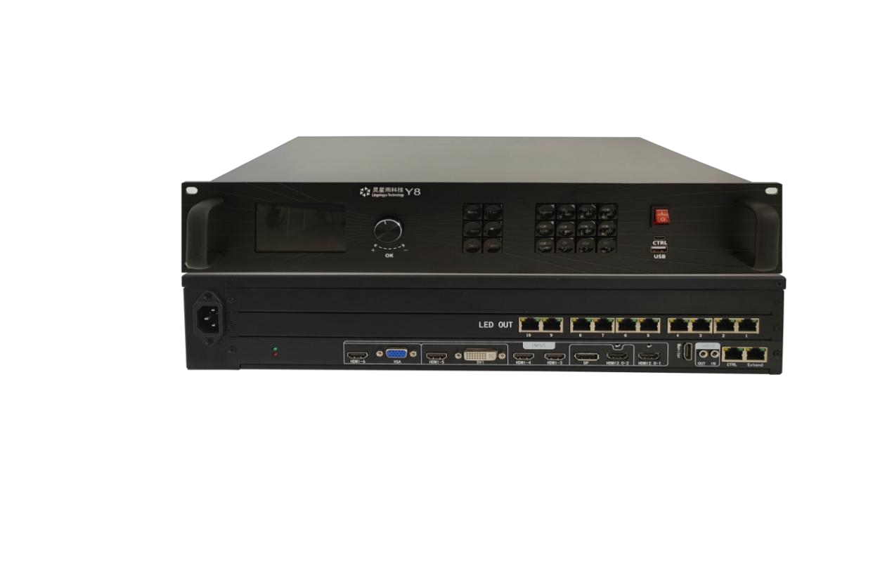 Y8-410是灵星雨研发的一款4K的LED显示屏控制设备。单台设备最大带载650万像素点,支持多种视频信号接口,具备10个千兆网口输出,满足客户显示的需求。