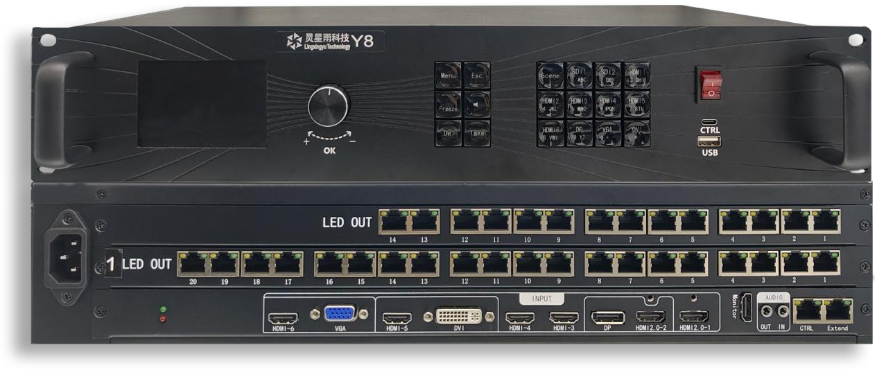 Y8-634是灵星雨研发的一款4K的LED显示屏控制设备。单台设备最大带载2210万像素点,支持多种视频信号接口,最大具备34个千兆网口输出,满足客户对超长超大屏的需求。