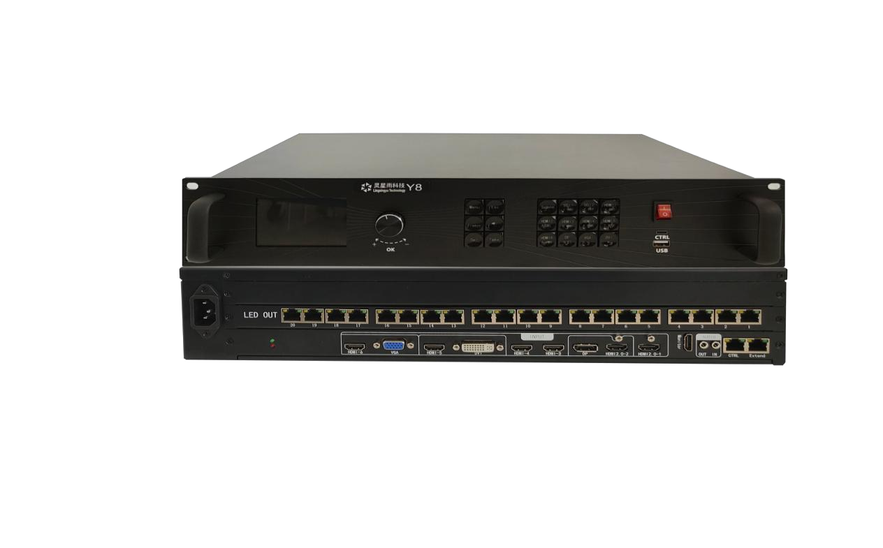 Y8-620是灵星雨研发的一款4K的LED显示屏控制设备。单台设备最大带载1300万像素点,支持多种视频信号接口,最大具备20个千兆网口输出,满足客户对超长超大屏的需求。